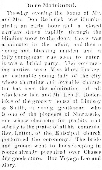 In re Matrimoni: Miss Mary Borkey weds Mr. Leo F. Roderick