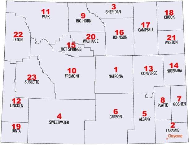 Map of Wyoming County License Plate Numbers