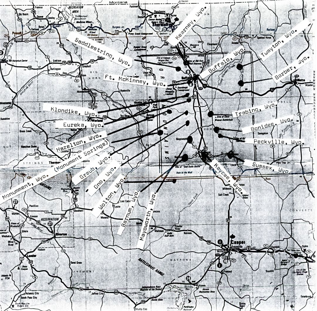 Map of Post Offices in Johnson County WY