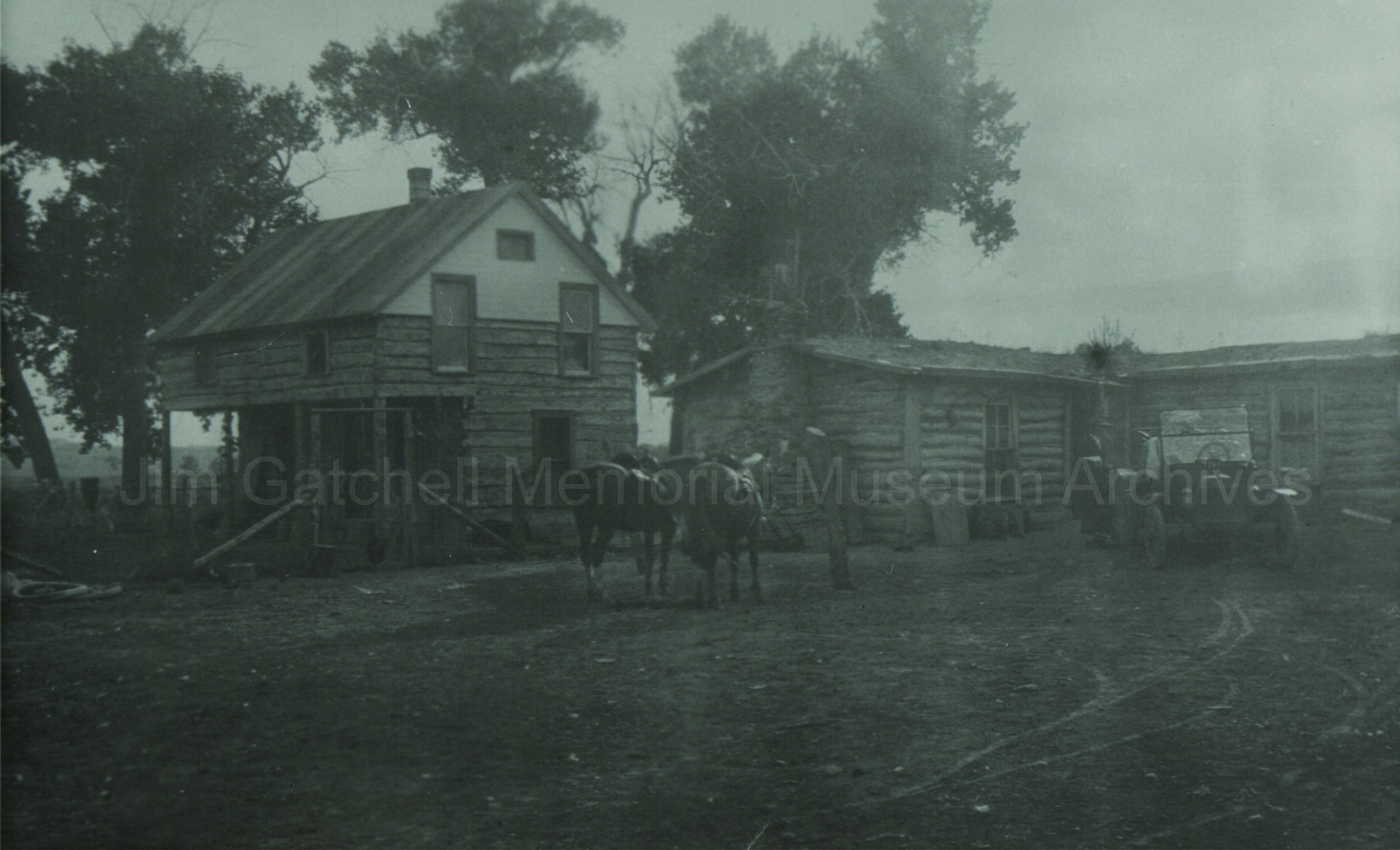 This photo is the Mayoworth Store and Post Office, located 11 miles west of Kaycee. The Horn can be viewed in the background. The history of the Mayoworth store and post office is as follows: In 1902, Mr. Manase became the first post master and later Mr. Cooper, Ben Gallinger, and James Sellars. During Cooper’s term, the Mayoworth dance hall was added to the log residence. Dances were held monthly with Mr. Simmons playing his famous fiddle. While James Sellars was postmaster he converted the hall into a store and Post Office. He needed more space for a store, as he had developed a thriving business (Sellars would later open a store in Kaycee on the lot North of the current museum). Many sheep outfits stopped at the Mayoworth Store for supplies and salt on their way to summer camps in the mountains. James Rinker followed Sellars as postmaster, then came Irene Dalzell and Erma Carr who served from 1929-1944 when the Post Office was discontinued. There was also a stage stop at Mayoworth for a short time and a school nearby to serve the Mayoworth Community which operated until approximately 1955.