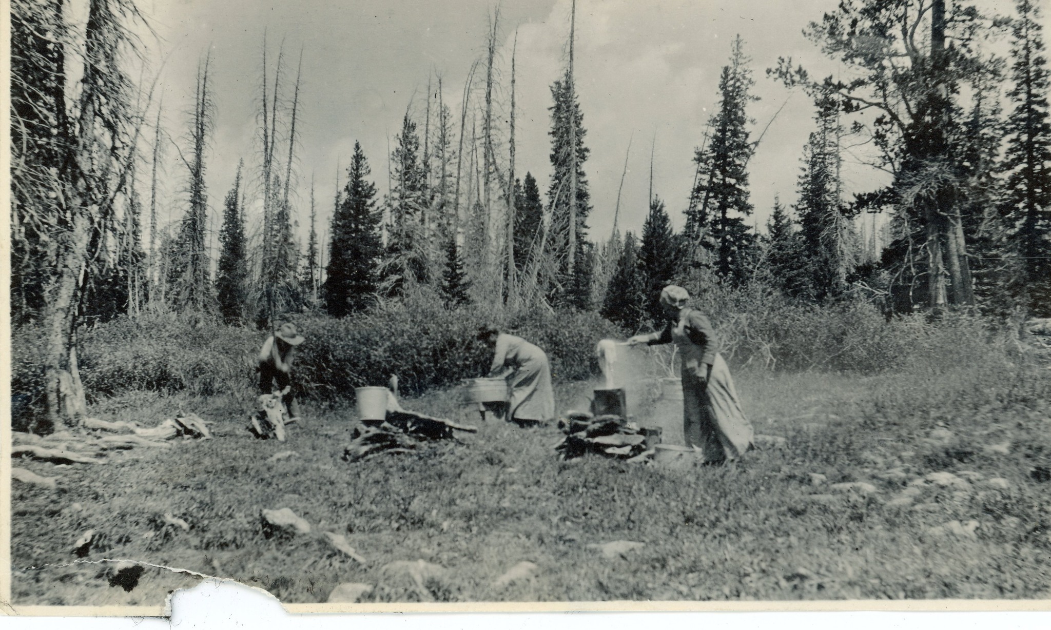 Sheep Camp at Baby Wagon in 1916. Wash day in camp with Mrs. Cora