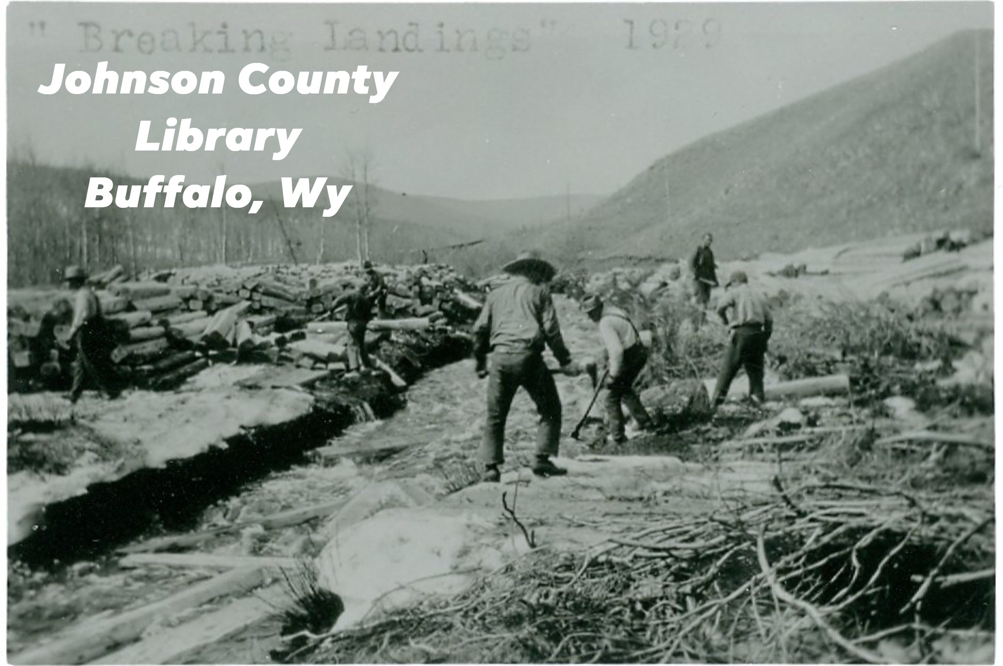 Sourdough 1929 - "breaking landings" men moving logs in stream