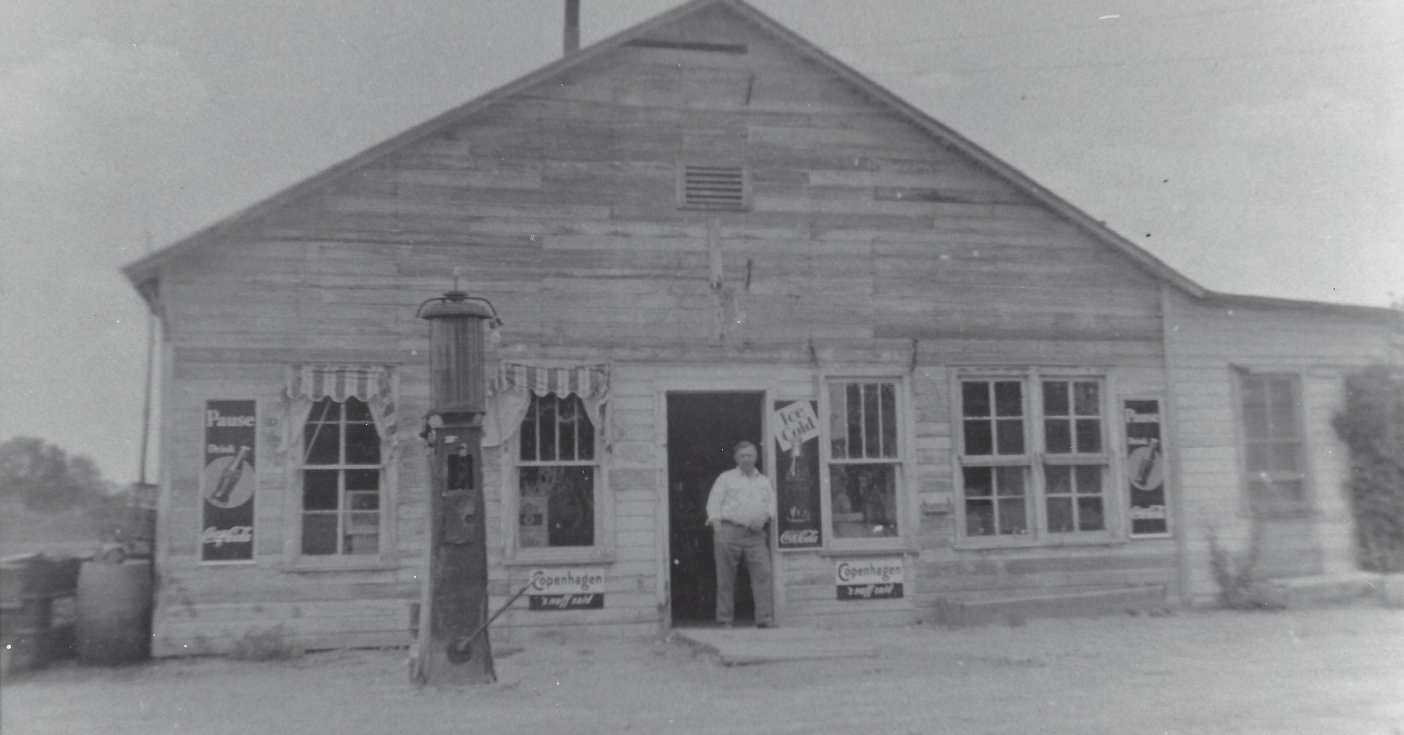 Sussex Store, with Sidney Gering in the doorway. He was married to Netty Leggett, daughter of O.A. Leggett, who ran the flour mill in Kaycee